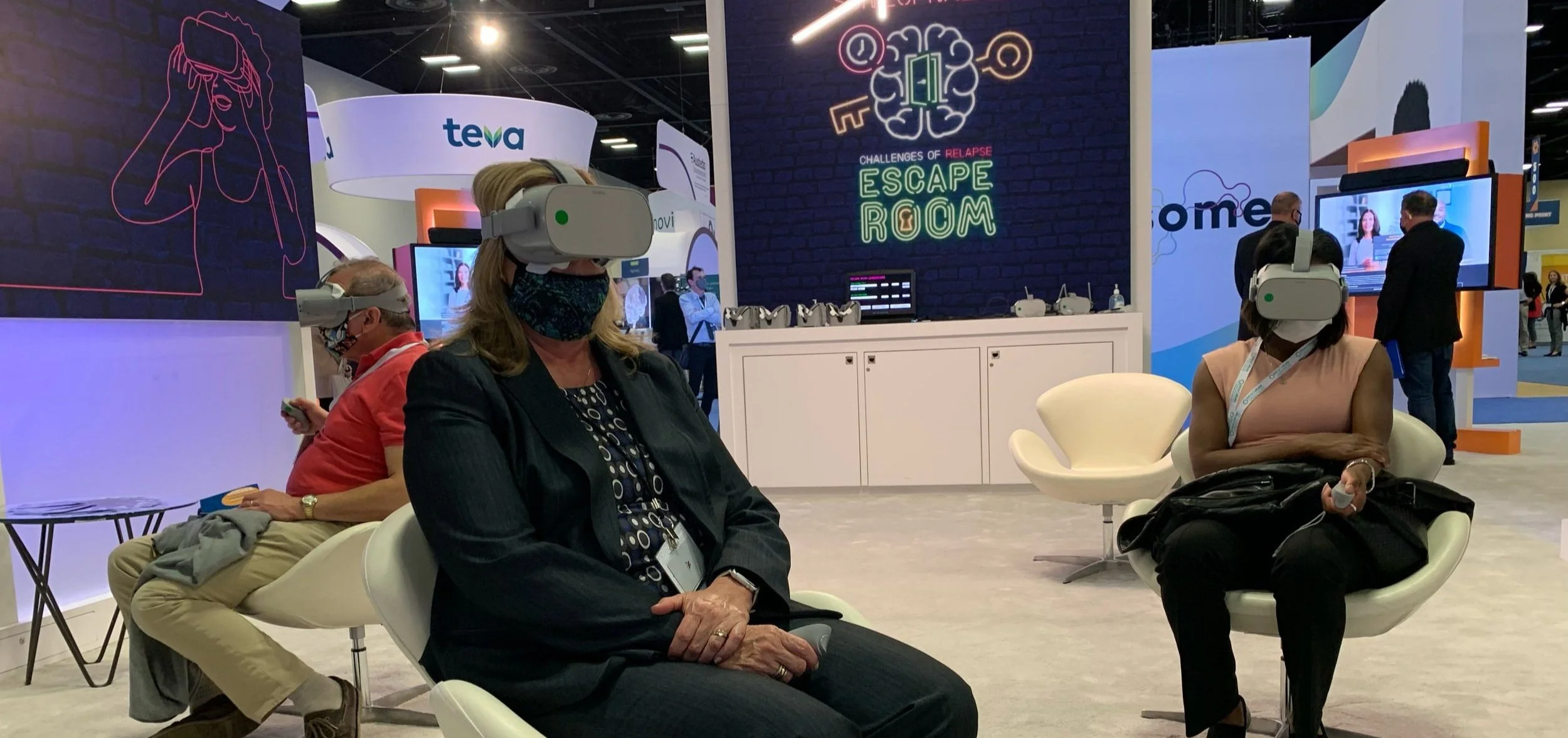 Recreating this impactful experience as a VR version opened up new avenues for engagement and accessibility. By bringing the immersive escape room concept to a virtual platform, HCPs could experience it conveniently on the trade show floor or within their own facilities. Whether as a solo experience or with 2-3 colleagues, the VR adaptation allowed for flexible, lower-cost deployment by making it easily transportable as a kit for sales representatives. This adaptation retained the core essence of the original escape room while leveraging the immersive potential of virtual reality to reach a wider audience and drive home the importance of long-acting medication treatments for schizophrenia patients.